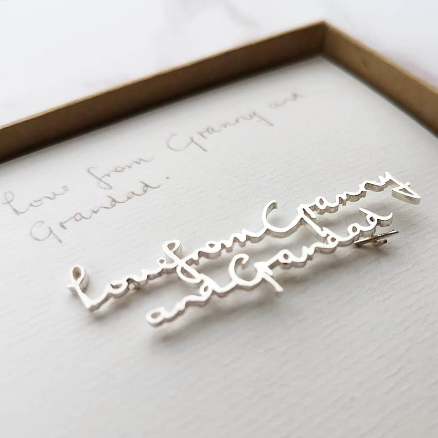 Memorial & bereavement handwriting jewellery and drawing jewellery for him. Handmade by...