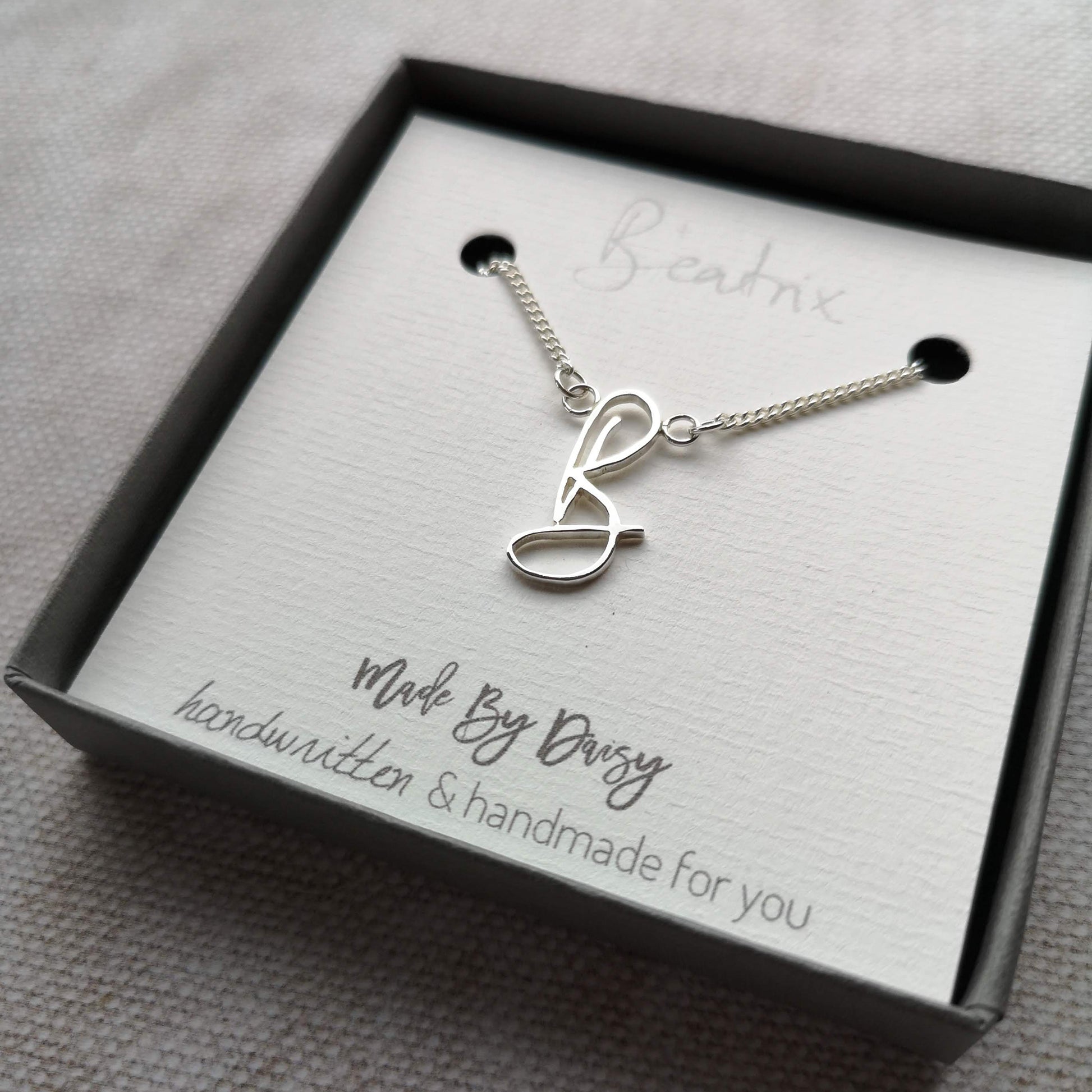 You can now choose to have your own or a loved one's initial in their very own unique handwriting, hand crafted into a special keepsake sterling silver necklace.